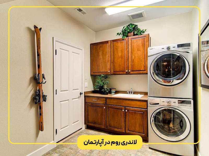 با توجه به محدودیت فضا در آپارتمانها، طراحی لاندری روم نیازمند خلاقیت و استفاده بهینه از فضاهای کوچک است. معمولاً در آپارتمانها از فضاهایی مانند کمد دیواری، راهروی ورودی، یا حتی بخشی از بالکن برای ایجاد یک لاندری روم جمعوجور استفاده میشود. استفاده از ماشین لباسشویی و خشککن دوقلو، کابینتهای دیواری و قفسههای کشویی از جمله راهکارهای موثر برای بهرهوری بیشتر در این فضاهاست.