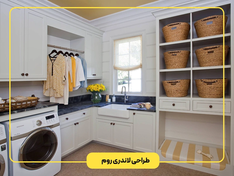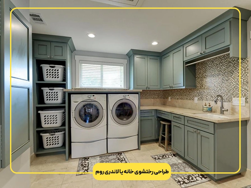 طراحی رختشویخانه یا لاندری روم نیازمند درک دقیق از عملکرد این فضا و شرایط محیطی خانه است. این فضا باید دارای تهویه مناسب، نور کافی، دسترسی آسان به لولهکشی آب و برق، و تجهیزات مقاوم در برابر رطوبت باشد. استفاده از قفسهها، کابینتهای ضد آب، سبدهای تفکیک لباس و انتخاب رنگهای روشن میتواند فضای رختشویخانه را دلنشینتر و کاربردیتر کند. طراحی مدرن رختشویخانه همزمان با زیبایی، کارایی و نظم را به خانه هدیه میدهد.
