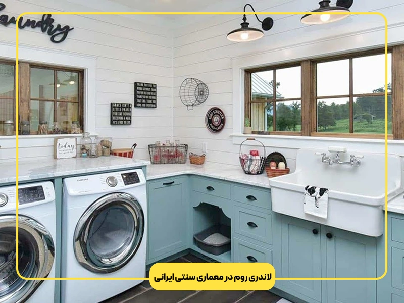 در معماری سنتی ایرانی، مفاهیمی مانند لاندری روم و کلوزت روم به شکل امروزی وجود نداشتند، اما فضاهایی با کارکردهای مشابه بهخوبی در طراحی خانهها دیده میشد. برای مثال، “رختشویخانه” در حیاط یا کنار آبانبار و “انبار لباس” یا صندوقخانه برای نگهداری پوشاک استفاده میشدند. امروزه، معماران ایرانی با الهام از این سنتها، تلاش میکنند فضاهای مدرن مانند لاندری و کلوزت روم را با روح معماری ایرانی تلفیق کرده و به خانهها هویت فرهنگی ببخشند.