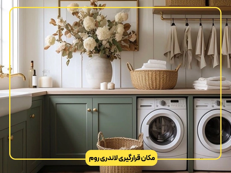 یکی از مهمترین نکات در طراحی لاندری روم، انتخاب محل مناسب برای آن در خانه است. بسته به معماری منزل، لاندری روم میتواند در نزدیکی حمام، آشپزخانه، ورودی خانه یا حتی در بالکن طراحی شود. نکته کلیدی این است که فضا باید دسترسی آسان به لولهکشی، برق، تهویه و نور طبیعی داشته باشد. در آپارتمانها معمولاً از فضاهای کماستفاده مانند کمد دیواری یا بخشی از راهرو برای تبدیل به لاندری روم استفاده میشود.