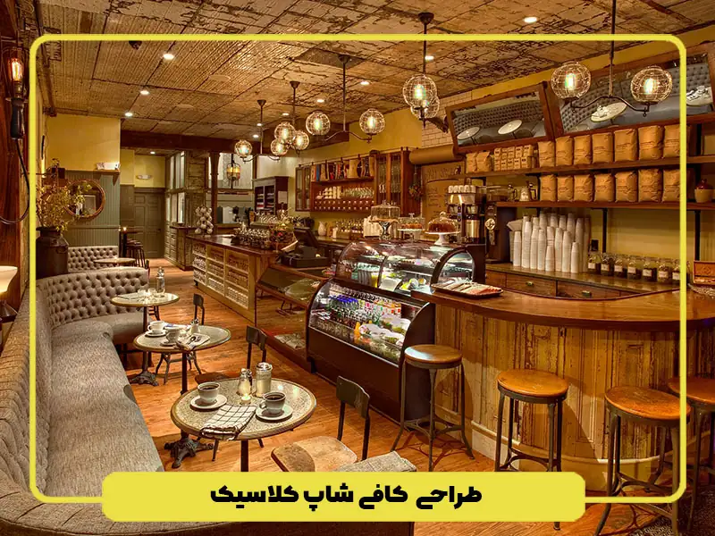 در کافی شاپ کلاسیک از رنگهای گرم و تیره، خطوط منحنی و ظریف، و متریالهای لوکس مثل چوب و سنگ استفاده میشود. عناصر اصلی نورپردازی گرم از نور مصنوعی و طبیعی، رنگهای گرم و تیره، و متریالهای لوکس مانند چوب و سنگ هستند. ایدههای خلاقانه نیز از جمله استفاده از آثار هنری، عناصر کلاسیک مانند عتیقهجات و مجسمهها، و نورپردازی متمرکز آمده است.