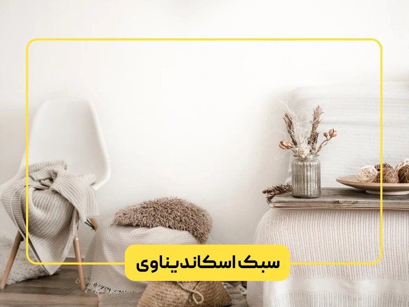 این سبک که از کشورهای شمال اروپا سرچشمه گرفته، بر اساس سادگی، عملکردگرایی و روشنایی طبیعی طراحی شده است. رنگهای سفید، خاکستری روشن و بژ در این سبک غالب هستند و استفاده از چوب روشن، پشم، کتان و متریالهای طبیعی باعث ایجاد حس گرما در فضا میشود. مبلمان سبک اسکاندیناوی دارای طراحی مینیمال، سبک و کاربردی است. نور طبیعی در این سبک اهمیت زیادی دارد و معمولاً پردههای سبک یا بدون پرده در طراحی آن استفاده میشود. این سبک به سبک مینیمال شباهت دارد اما از نظر متریال و بافتها گرمتر و صمیمیتر است.