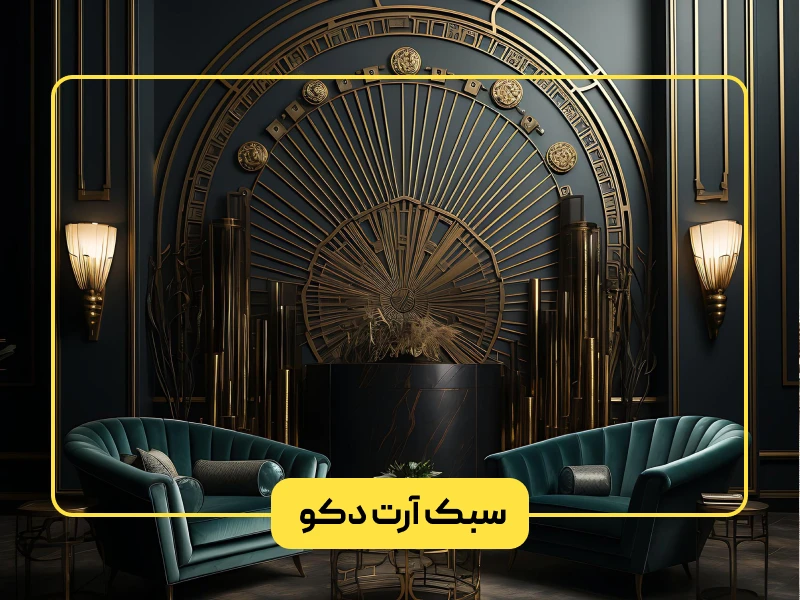 آرت دکو سبکی لوکس و پرزرقوبرق است که در دهه ۱۹۲۰ میلادی شکل گرفت و تأکید زیادی بر اشکال هندسی، خطوط تمیز و متریالهای گرانبها دارد. در این سبک، رنگهای جسورانه مانند مشکی، طلایی، نقرهای و آبی کبود به کار میرود. استفاده از متریالهایی مانند شیشه، برنج، مخمل و سنگ مرمر از ویژگیهای اصلی آن است. مبلمان دارای فرمهای منحنی و خطوط برجسته است و تزئینات ظریفی مانند آیینههای بزرگ و آثار هنری مدرن در آن جایگاه ویژهای دارند. این سبک حس تجمل و شکوه را به فضا القا میکند.