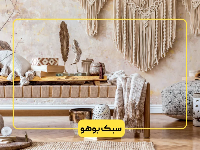 این سبک بر آزادی، خلاقیت و استفاده از رنگهای زنده و الگوهای متنوع تأکید دارد. در فضاهای بوهیمی، از کوسنهای رنگارنگ، فرشهای دستباف، پردههای نازک و گیاهان آپارتمانی استفاده میشود. مبلمان در این سبک اغلب چوبی و دستساز است و ترکیب الگوهای متفاوت در آن مجاز است. این سبک حس ماجراجویی و هنر را در فضا ایجاد میکند و به سبک الکتیک نزدیک است اما تأکید بیشتری بر عناصر فرهنگی و دستی دارد.